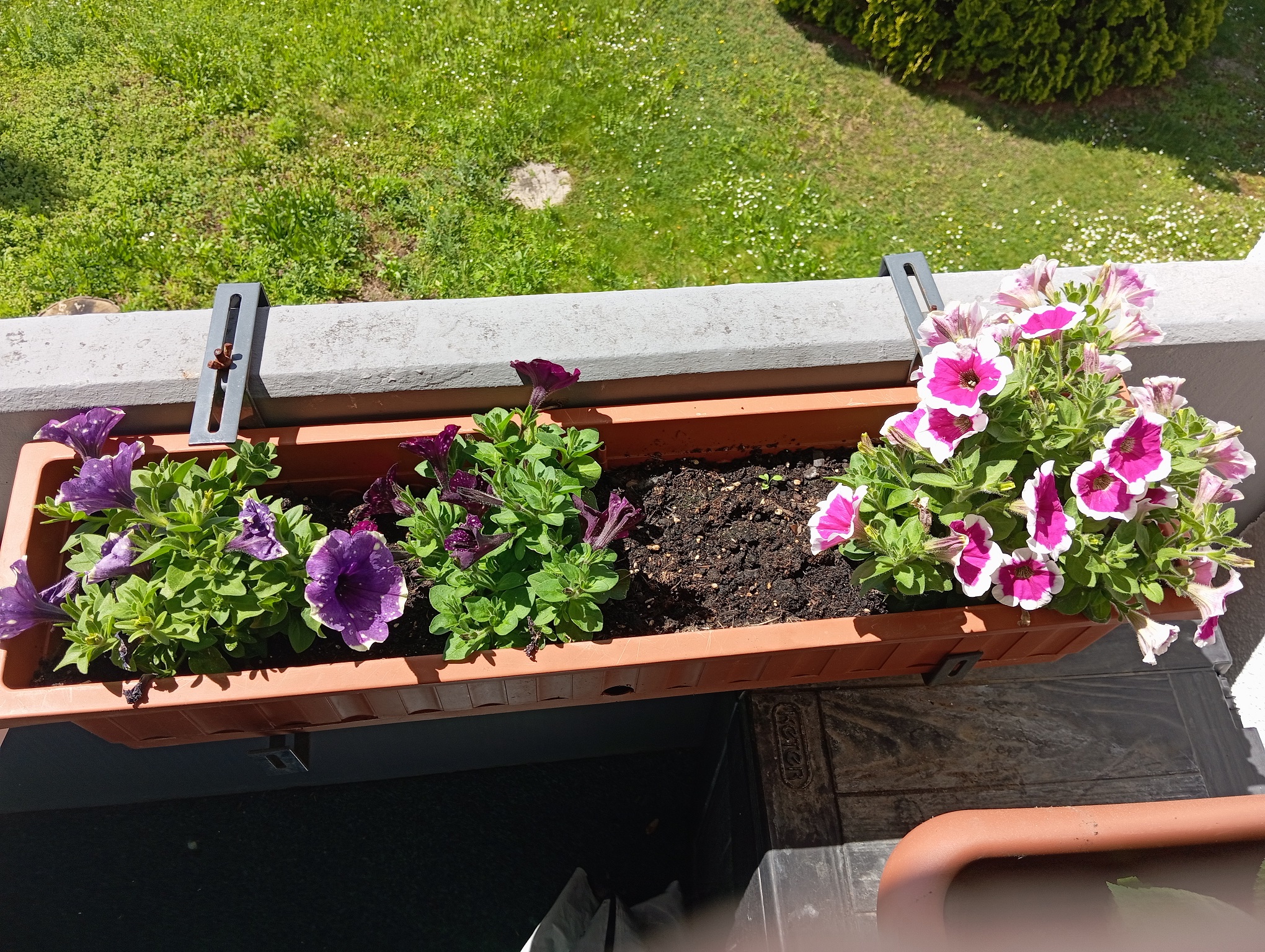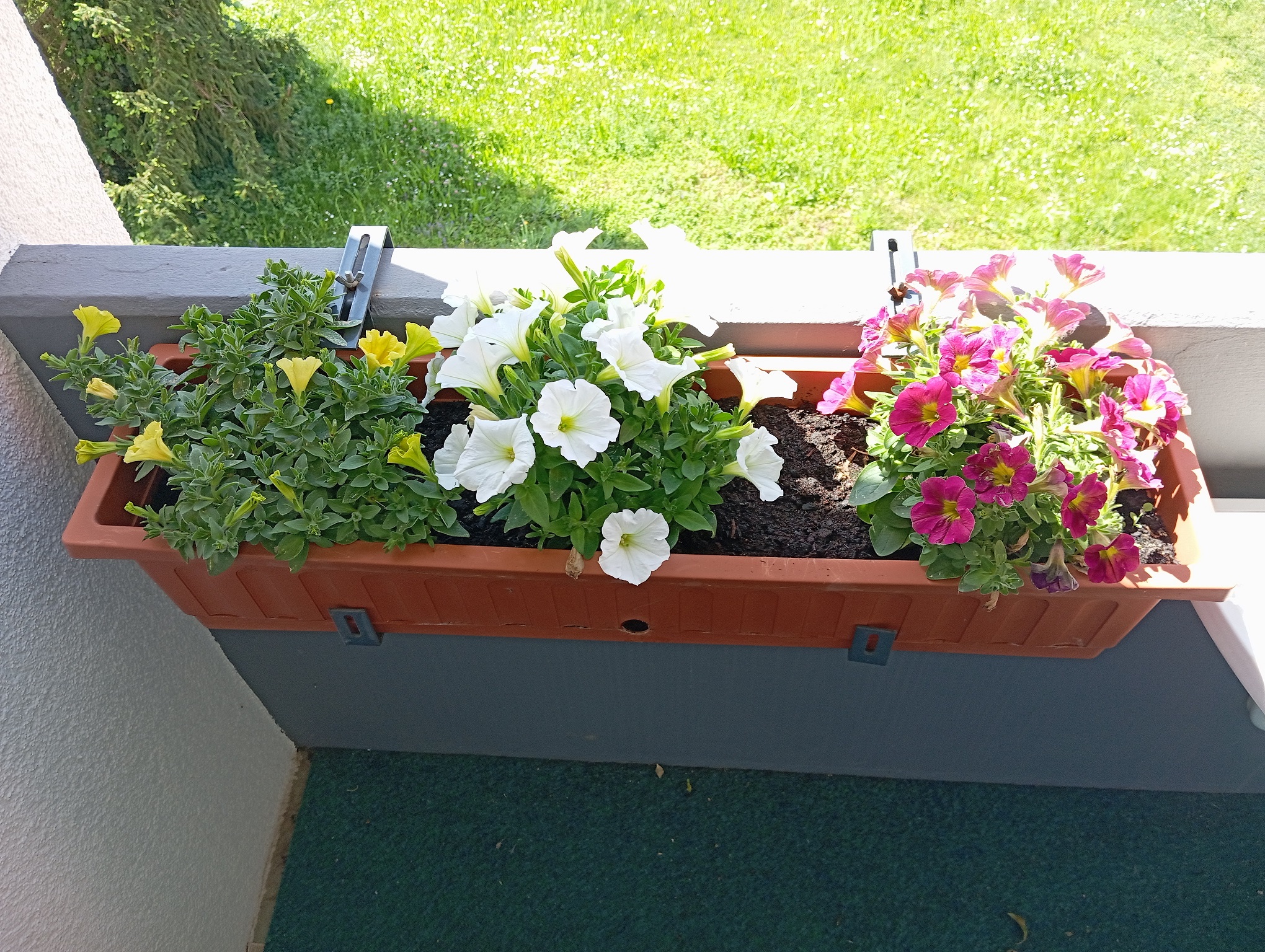 Dieses Jahr 2024, fiel die Wahl auf Petunien Mixe vom Obi Schweiz im M-Parc Dreispitz in Basel, und wurden dieses Jahr Balkonkästen mit Petunienmixen die mehrfarbig sind gepflanzt.